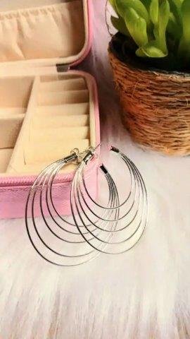 Com banho de ródio branco, design com argolas em camadas, acabamento polido e brilhante